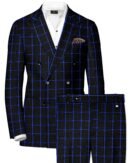 This double-breasted wool-rich suit stands out with its refined jade-black tone accented by a subtle cerulean Plaid pattern. Designed for formal settings. it delivers a balanced feel—premium yet mid-priced. As part of our limited collection. it won’t be restocked. Pair it with a crisp white spread-collar shirt or a soft sky-blue shirt for a sharp. elegant finish.